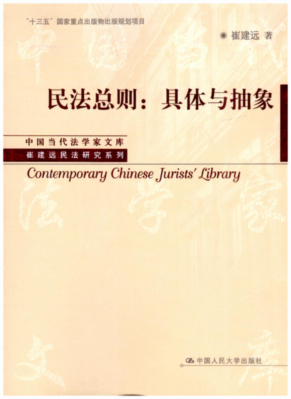 摘自:《民法總則:具體與抽象/崔建遠(yuǎn)民法研究系列》。中國(guó)人民大學(xué)出版社2017年11月出版。內(nèi)容簡(jiǎn)介:本書既有民法總則本體的介紹和闡釋,也有民法與憲法、商法、知識(shí)產(chǎn)權(quán)法、行政法、民事訴訟法之間關(guān)系的辨析;既有民法總則的解釋論,更有民法及其總則的立法論。