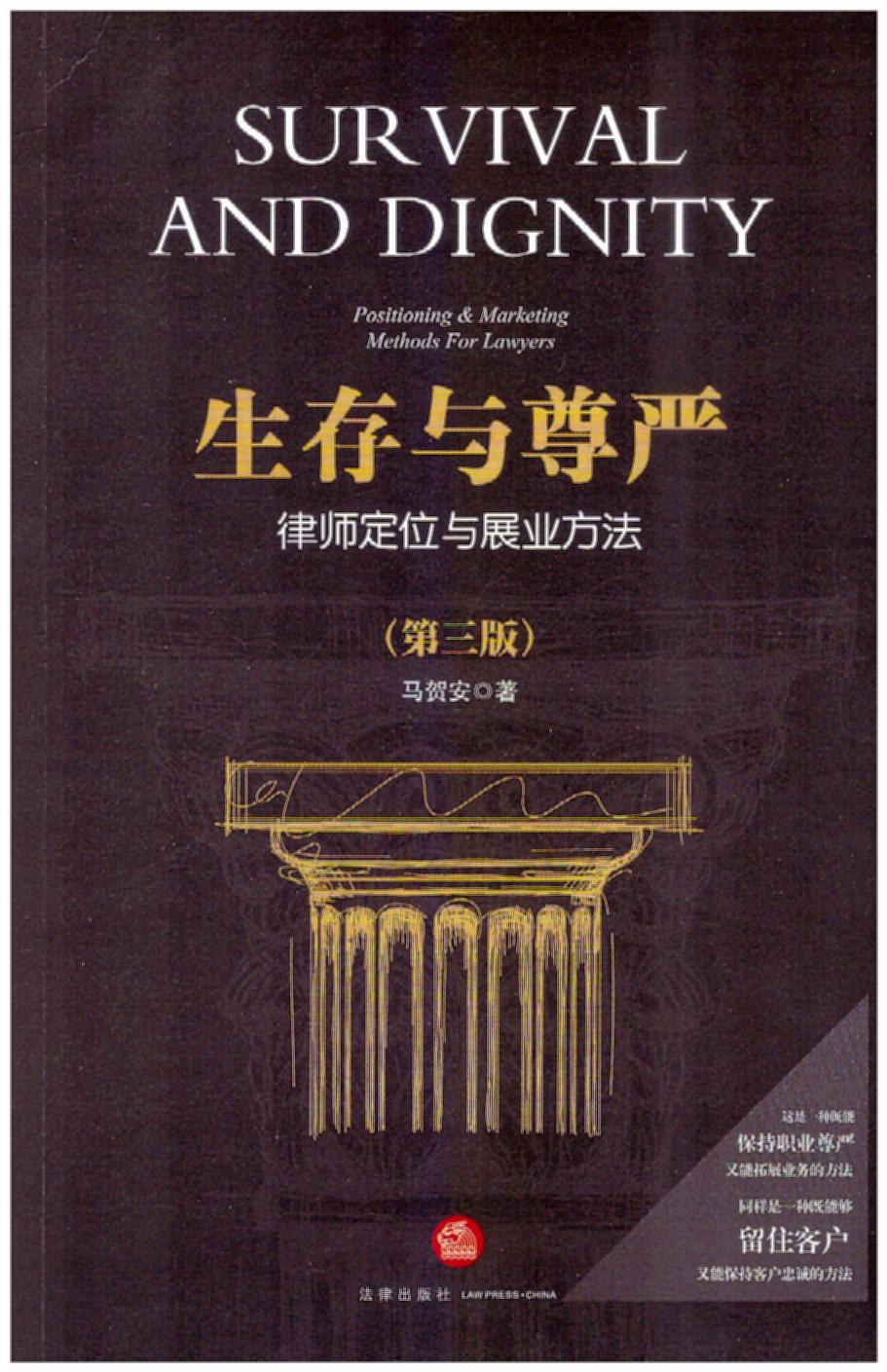 摘自:《生存與尊嚴(yán):律師定位與展業(yè)方法(第三版)》,法律出版社2016年1月出版。內(nèi)容簡(jiǎn)介:初版與第二版都非常暢銷(xiāo)并歷經(jīng)多次加印。許多資深律師在網(wǎng)上寫(xiě)這本書(shū)的“讀后感”,許多院校將此書(shū)列為參考書(shū)目,全國(guó)律協(xié)和多省律協(xié)將此書(shū)列為律師必讀書(shū)目。