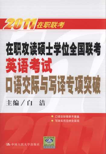 - 書名:2011在職攻讀碩士學位全國聯(lián)考英語考試口語交際與寫譯專項突破