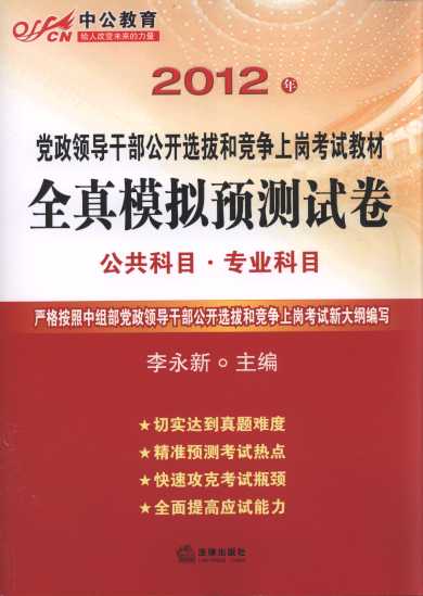 • 2012年黨政領(lǐng)導(dǎo)干部公開選拔和競爭上崗考試教材:全真模擬預(yù)測試卷(公共科目.專業(yè)科目)(中公教育)
