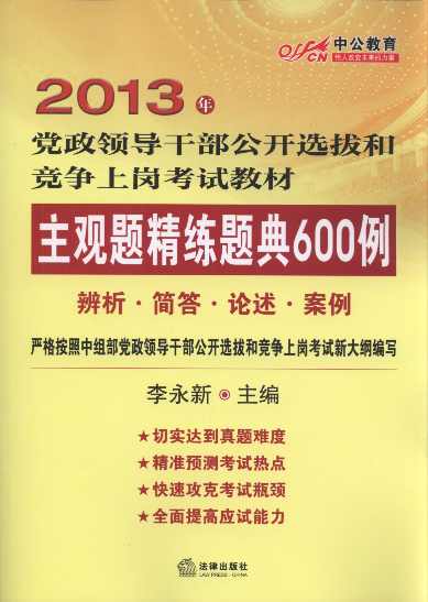 書名:2013年黨政領(lǐng)導(dǎo)干部公開選拔和競爭上崗考試教材:主觀題精練題典600例(辨析.簡答.論述.案例)