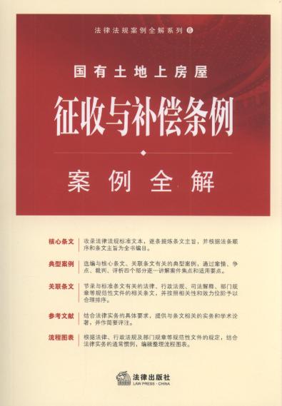 本書以《國有土地上房屋征收與補償條例》條文為線索,全面整合相關(guān)典型案例、觀點和其他規(guī)范性文件條文,通過核心條文、典型案例、關(guān)聯(lián)條文、參考文獻和流程圖表全面歸納相關(guān)領域最新成果,方便讀者理解和使用。