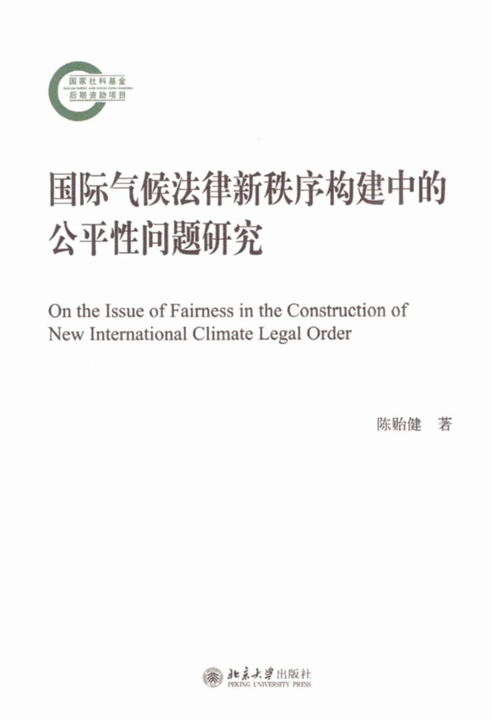 書名:國際氣候法律新秩序構(gòu)建中的公平性問題研究/國家社科基金后期資