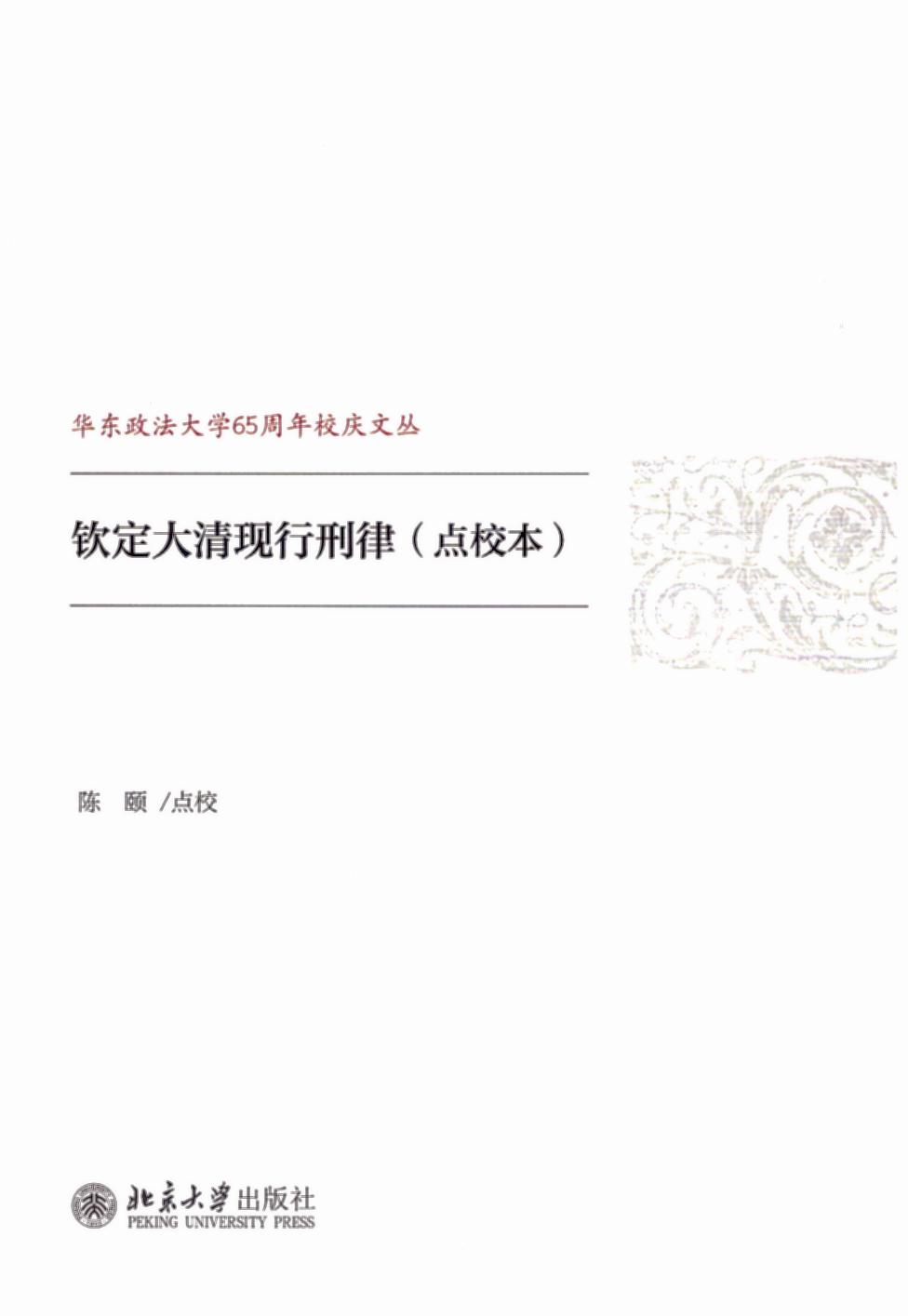 書名:欽定大清現(xiàn)行刑律:點校本/華東政法大學(xué)65周年校慶文叢