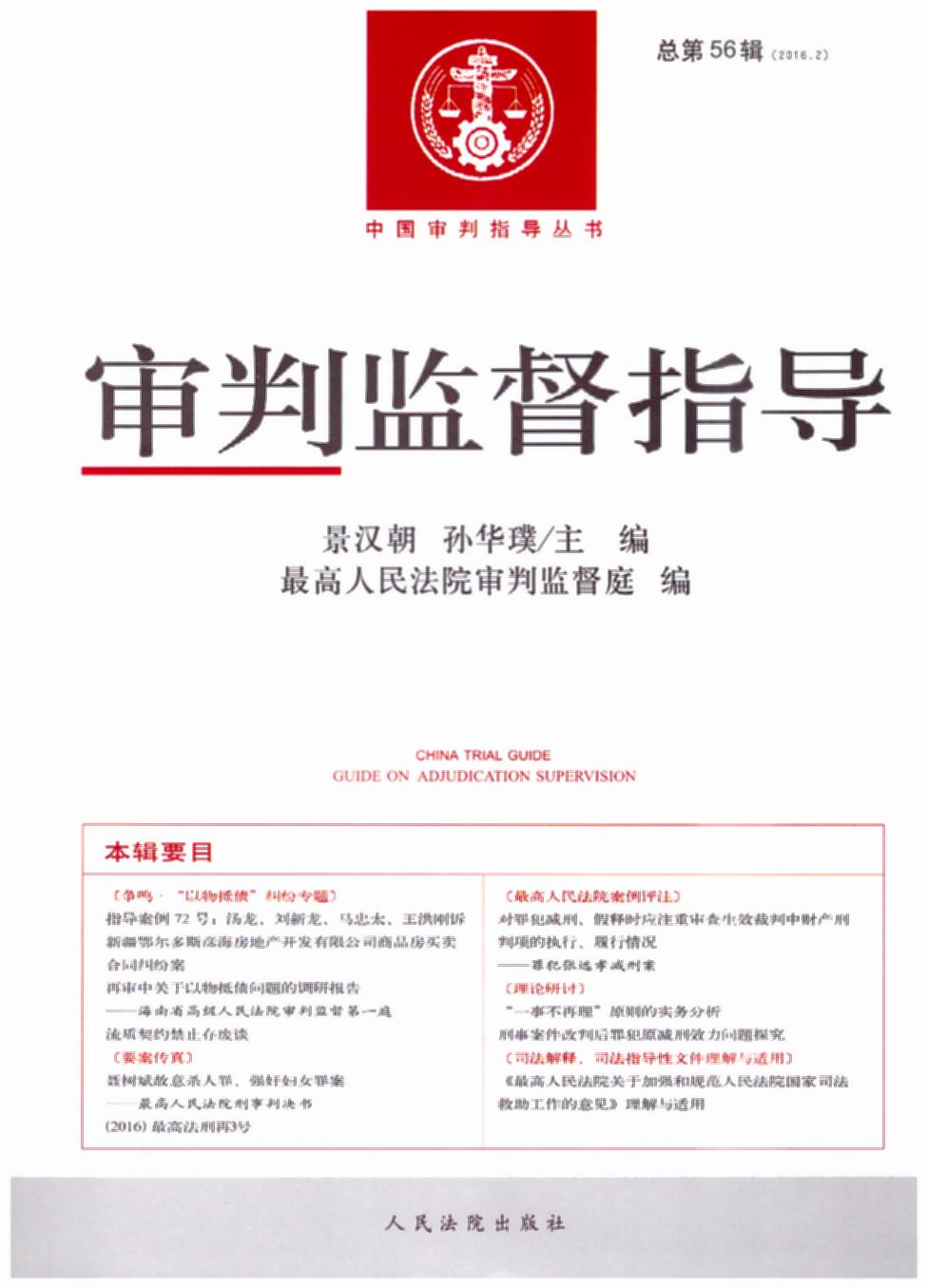 • 審判監(jiān)督指導(dǎo)(2016年第2輯)(總第56輯)