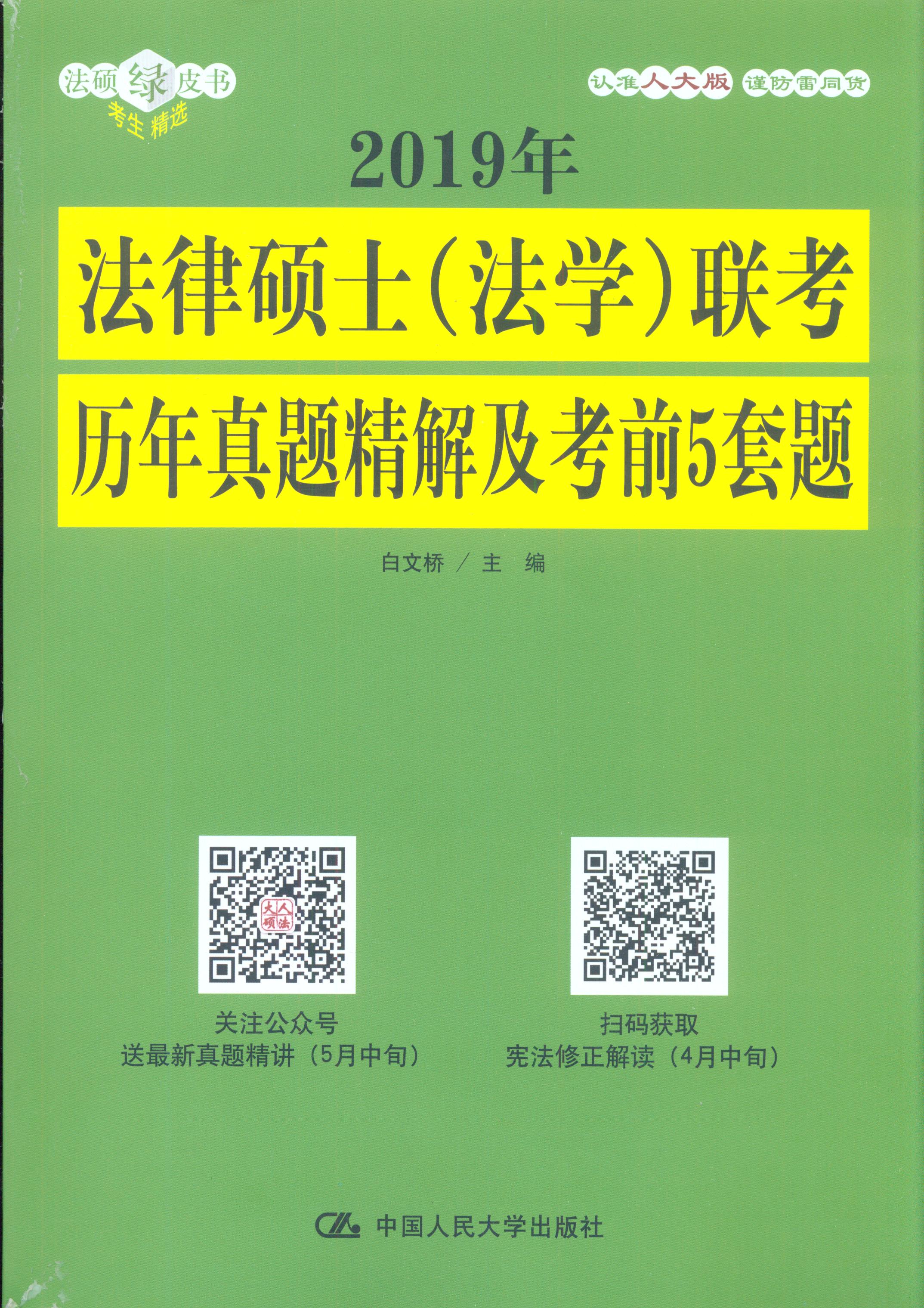 書名:2019年法律碩士(法學(xué))聯(lián)考?xì)v年真題精解及考前5套題