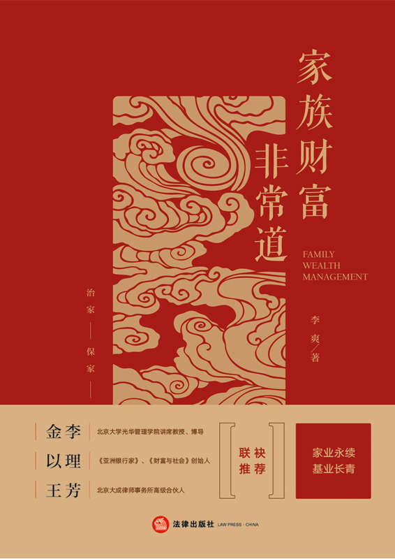 《家族財(cái)富非常道》是市面上少有的集系統(tǒng)性家族治理理論、案例分析和專業(yè)解讀于一身的家族著作,是一本專門闡明家族精神財(cái)富如何培養(yǎng)、傳承的著作,是李爽律師從業(yè)十年智慧的結(jié)晶!李爽律師是北京大成律師事務(wù)所家族辦公室團(tuán)隊(duì)的合伙人,也是知名家族財(cái)富管理專家、財(cái)富管理暢銷書作者。作為中國最早開始從事家族財(cái)富管理的專業(yè)律師之一,李爽律師將多年從業(yè)經(jīng)驗(yàn)具化為《家族財(cái)富非常道》中深入淺出的道理和知識(shí)點(diǎn),為讀者帶來思考與啟迪。