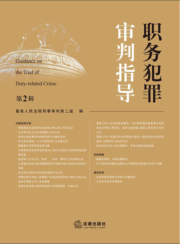 "《職務(wù)犯罪審判指導(dǎo)》系最高人民法院刑事審判第二庭主辦的針對(duì)職務(wù)犯罪案件審理的業(yè)務(wù)指導(dǎo)和研究性出版物,以立足實(shí)踐、突出實(shí)用、重在指導(dǎo)、體現(xiàn)權(quán)威為編輯宗旨,通過法律適用分析、法官會(huì)議紀(jì)要、實(shí)務(wù)釋疑、經(jīng)驗(yàn)交流等形式,固定審判、調(diào)研成果,為刑事司法人員辦理職務(wù)犯罪案件提供有針對(duì)性和權(quán)威性的業(yè)務(wù)指導(dǎo)和參考。